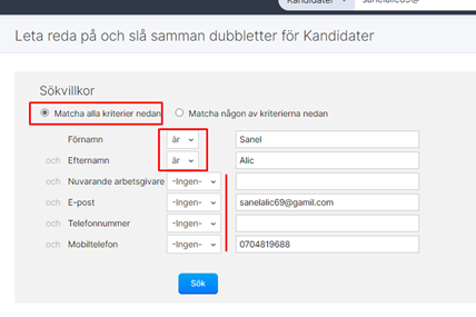 Här kan användarna själva åtgärda felaktiga adresser förutom i de fall en kandidat sökt ytterligare jobb med korrekt adress. Då finns det en dubblett i systemet som måste åtgärdas.